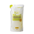 お皿洗いで石けんを足す時にキャップを取ったりするのが面倒といういうことはありませんか?ポンプタイプの台所石けんは、両手が水で濡れていてもポンプの口にスポンジを付けてピュッと一押しすれば適量の石けんがすぐに出てきます。手肌が荒れたり、川や海を汚す合成界面活性剤や合成化学物質を一切使わず、植物油を原料にした石けんでできていますから、汚れをしっかり落とすのに泡切れがよくて、すすぎが簡単!400番の台所石けんよりも粘度が低くサラッとした感覚で、無香料・無着色。
